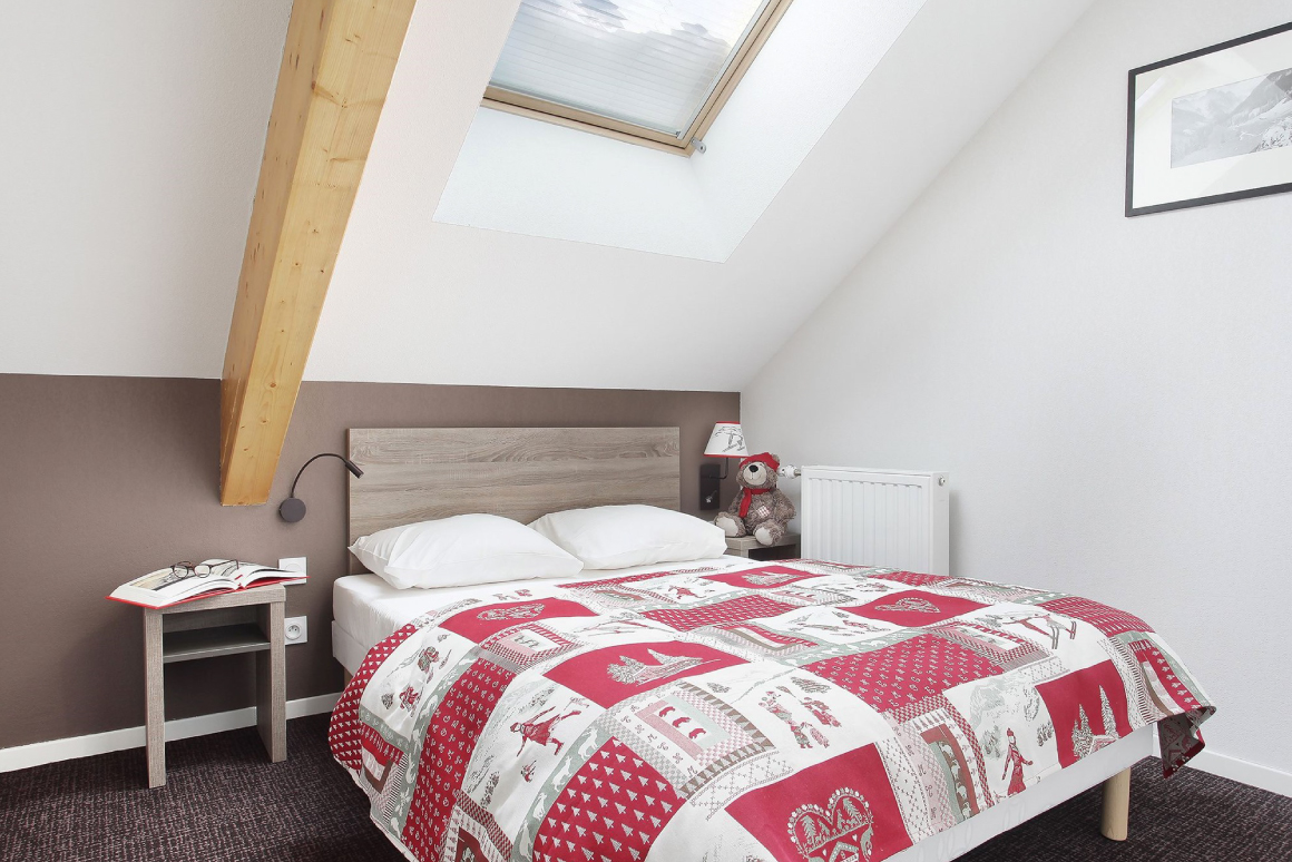 » 3 pièces 6 personnes (env. 50 m² en moyenne) : séjour avec canapé lit gigogne, chambre avec lit double (zippé dans certains logements), chambre avec 2 lits simples.