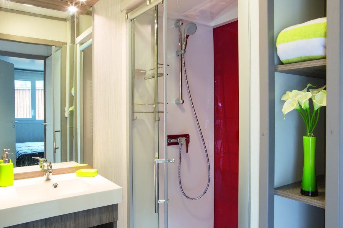 Douche et lavabo.