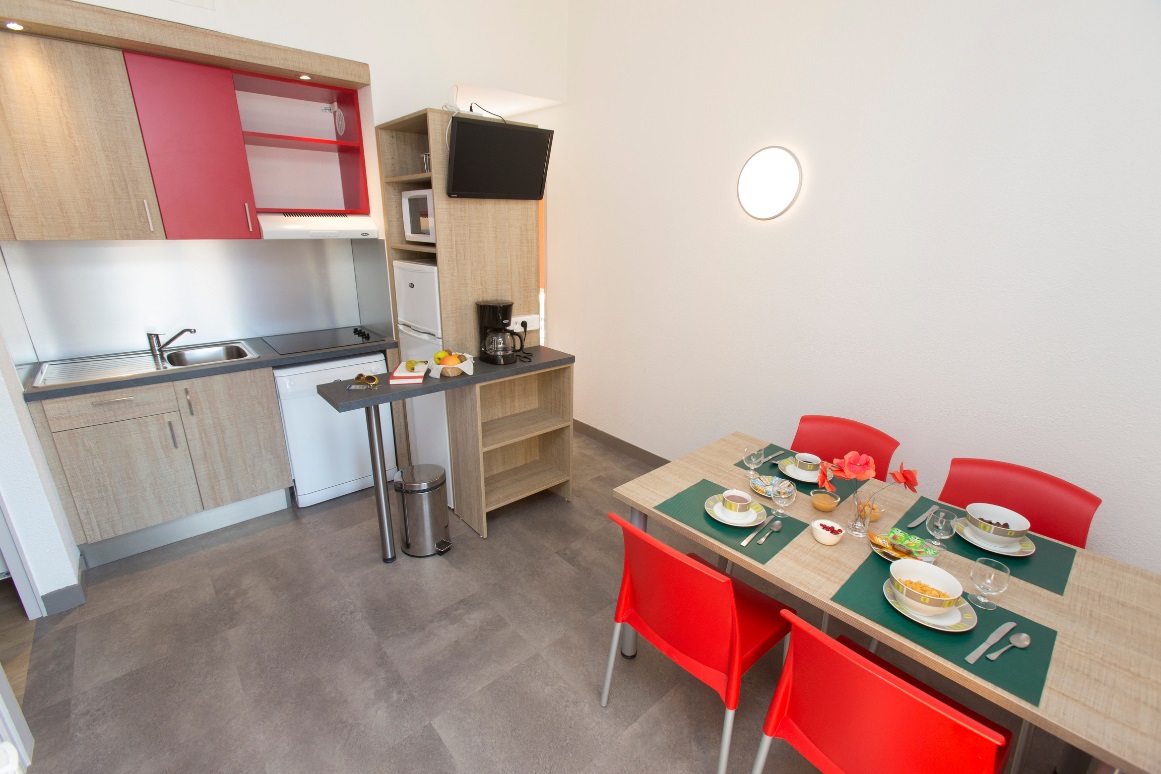 Tous les appartements (entièrement rénovés) disposent d’une kitchenette équipée (+ lave-vaisselle) et sanitaires complets. Terrasse ou balcon avec salon de jardin et Ventilateur.