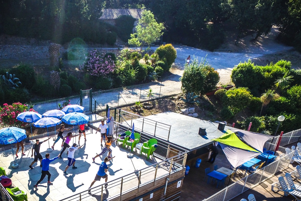 Sport : aquagym, water-polo, tournois de ping-pong, tennis, pétanque.